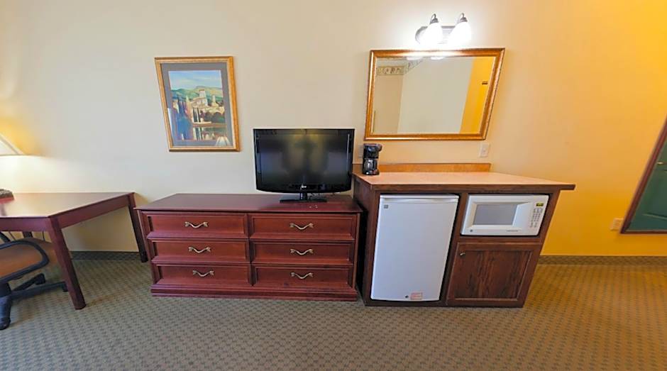 This suite features a separate bedroom and seating area. Also includes cable TV, a microwave and a refrigerator.